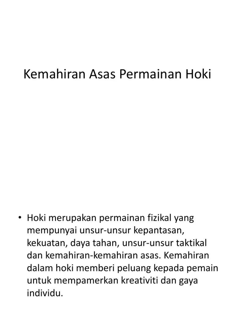 View kemahiran asas permainan hoki.docx from zoology 107 at seneca college. Kemahiran menjaga gol · kemahiran asas berdiri dan pergerakan melintaso gol. Memukulmemukul juga kemahiran asas dalam permainan hoki yang perlu dikuasai oleh setiap pemain. Kelebihan kemahiran memukul ini adalah membolehkan bola bergerak dengan . Play this game to review physical ed.